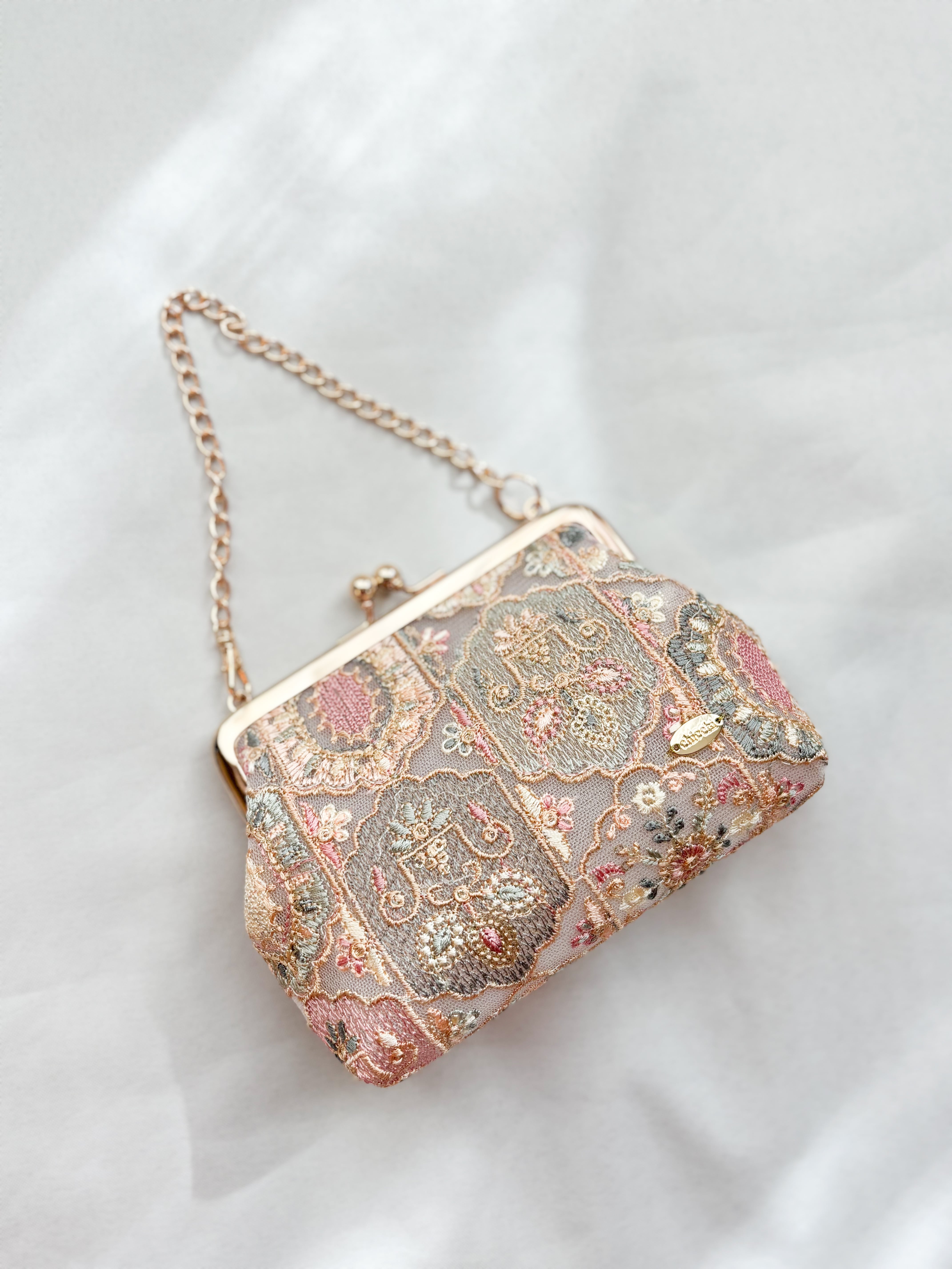 インド刺繍のチュール生地を使用した12cmがま口ポーチです。