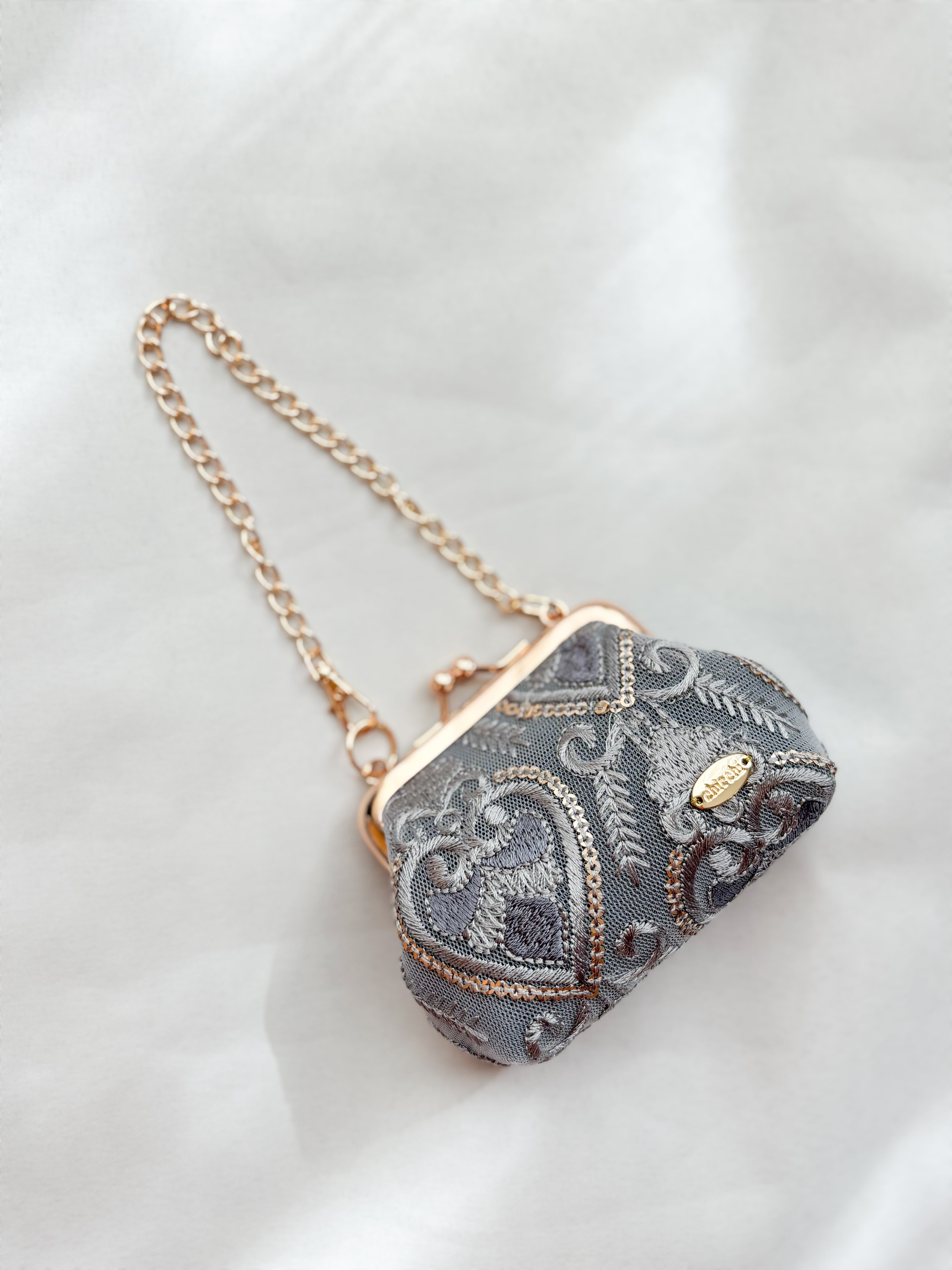 インド刺繍のチュール生地を使用した7.5cmミニがま口ポーチです。